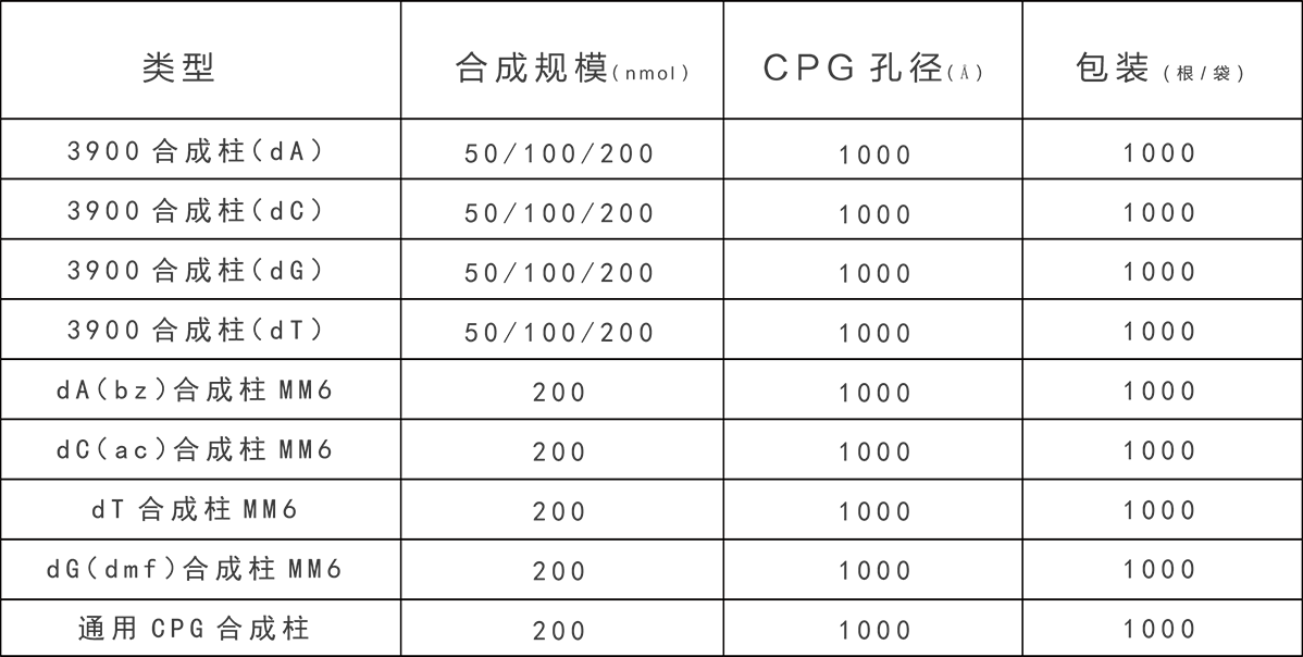第一代合成柱在柱管內填充固相載體CPG,并由上下篩板固定,合成通量大、容易裝配,適合短鏈引物合成。